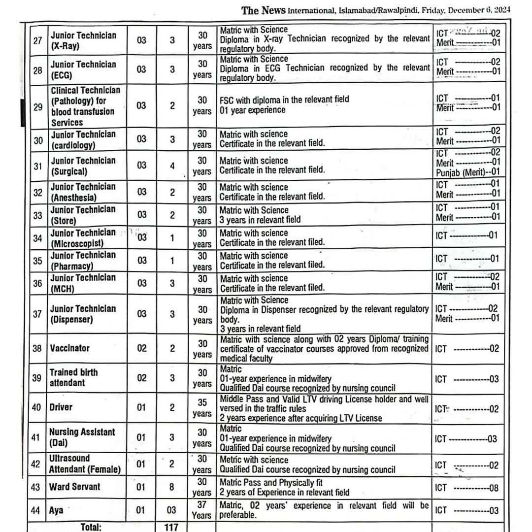 Candidates must ensure that their applications meet all eligibility criteria and take this opportunity to contribute to strengthening healthcare services in Islamabad.